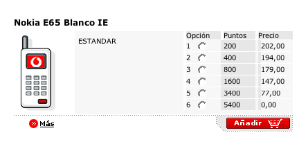 Enguillem tiene toda la razón: Vodafone ofrecía a sus posibles clientes un Nokia E65 (excelente teléfono) por 19 €. Pero: ¿Cuánto le salía este mismo teléfono con el programa de puntos a un cliente de Vodafone? Respuesta: