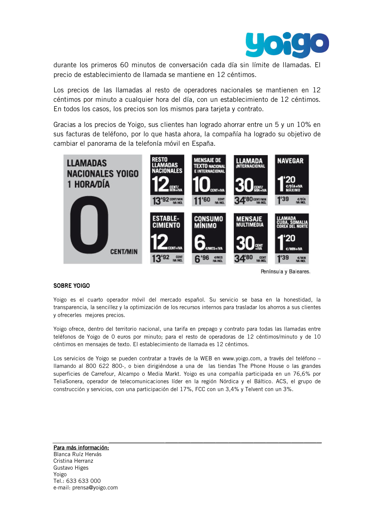25 de Enero de 2008. Yoigo cuelga en su sala de prensa un pdf con el intitulado «El mercado acoge de manera muy positiva las tarifas de Yoigo» ¡Visto lo ocurrido después, el intitulado es casi mágico! 😛
